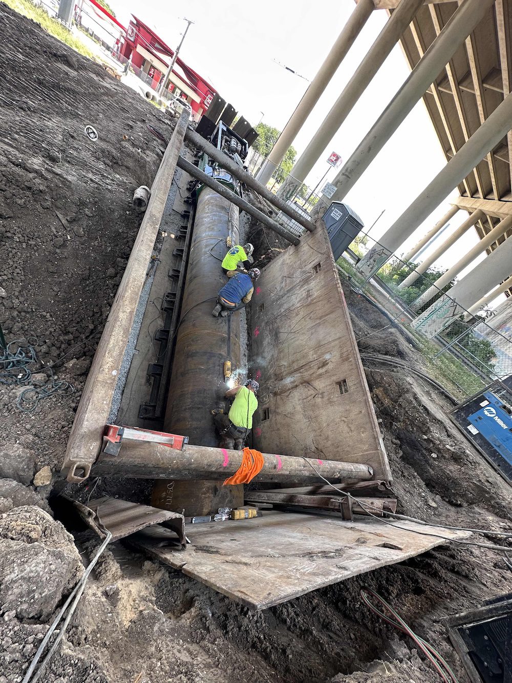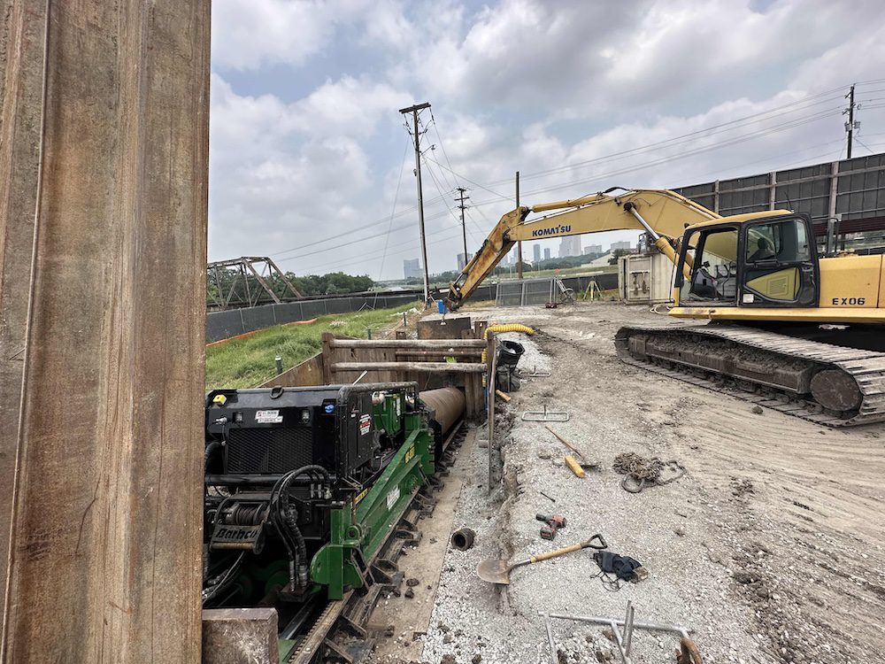 - 180-foot 54″ casing under an interstate, multiple frontage roads, and six railroad tracks