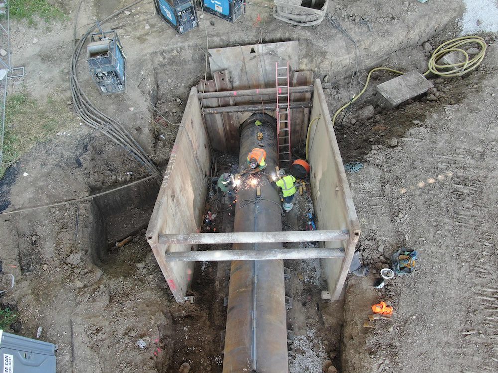 Superintendent Rick Siemers and Supervisor Brandon Derry led the effort, supported by a seasoned crew and several new trainees who gained firsthand experience in pipe ramming. Bentonite lubrication and an auger boring machine were used to clean out the conductor barrels before turning them over to the HDD contractor.
