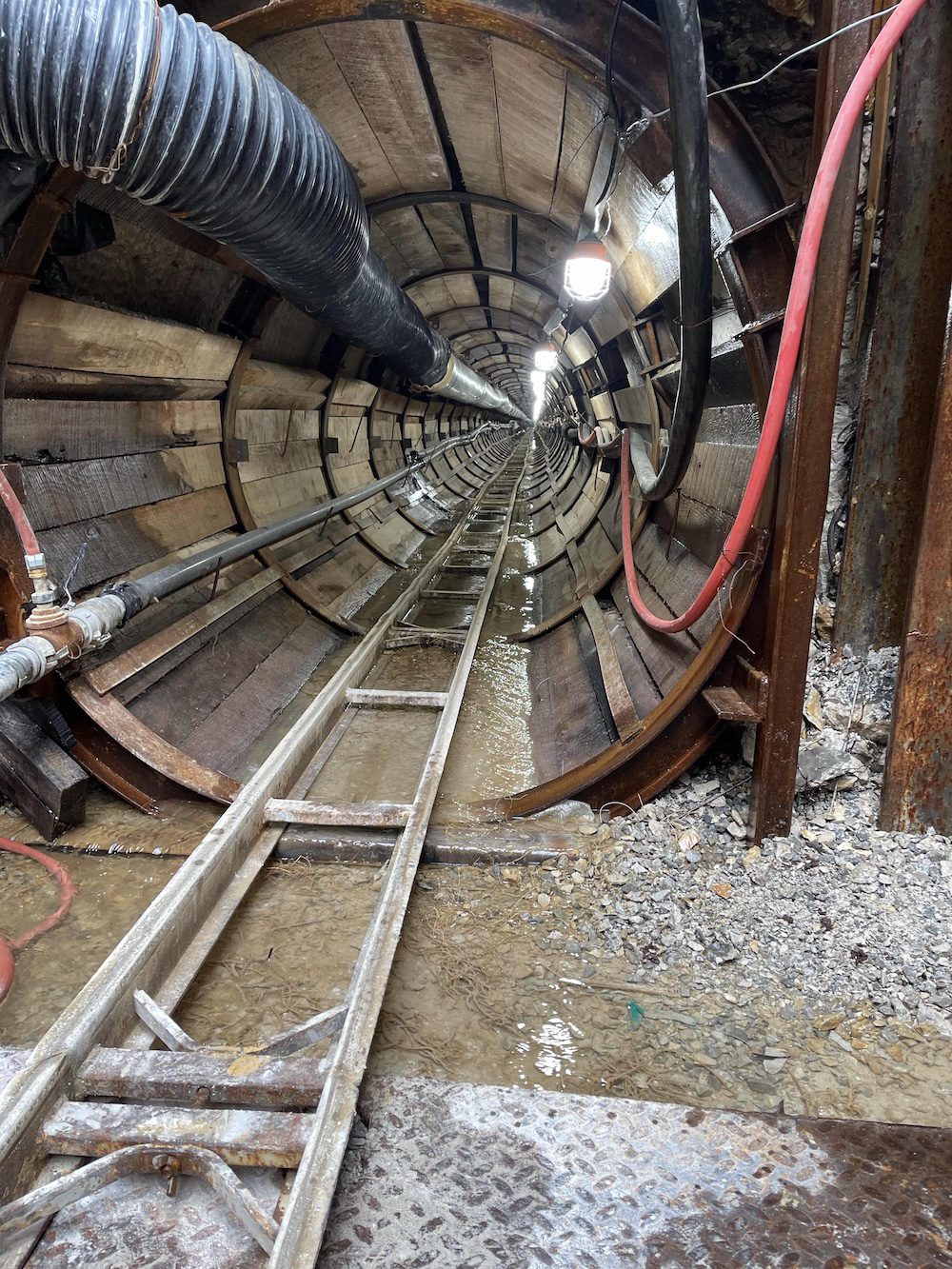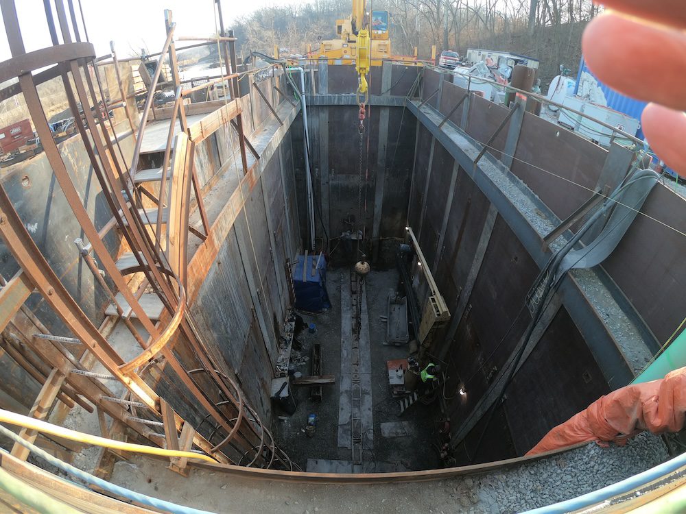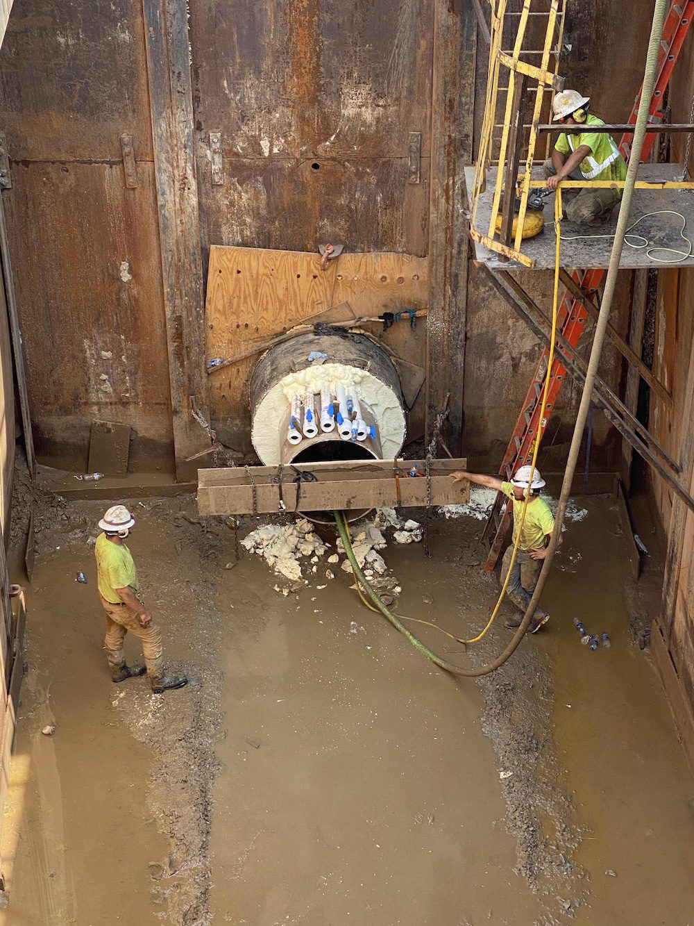 The original design called for a 570-foot soft-ground tunnel. However, supplemental geotechnical exploration revealed a significant bedrock knoll between the launch and receiving shafts. To keep the project viable, the tunnel was realigned and extended to 640 feet.
